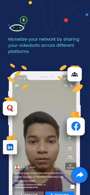 App's AI recommendation engine matches aspirants with the right set of experts who were exactly in the same situation a few years back. This unique system of video bot technology creates a video call experience with experts using their pre-recorded sessions of getting placed with top firms & best B-schools.