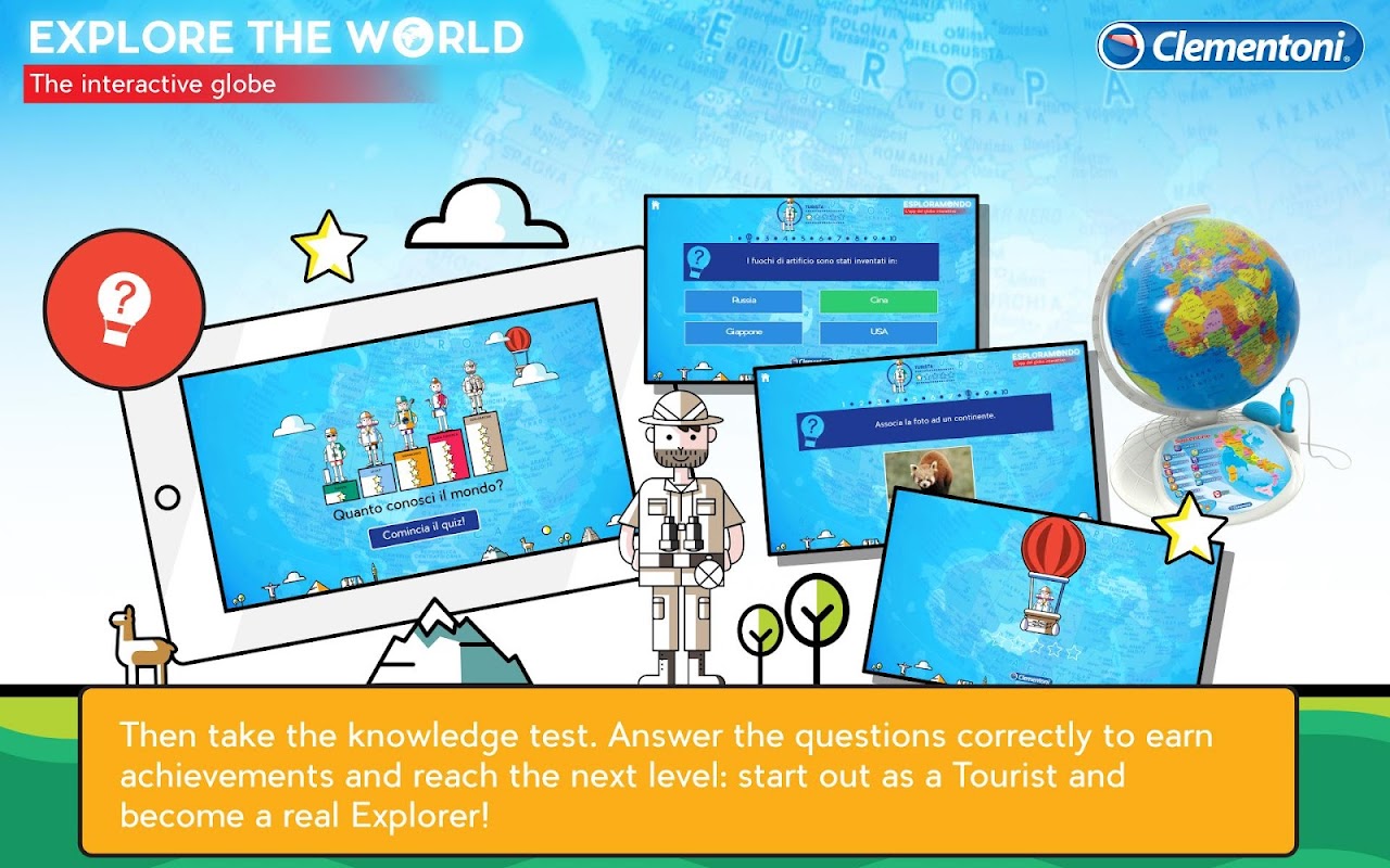 Then take the knowledge test. Answer the questions correctly to earn achievements and reach the next level: start out as a Tourist and become a real Explorer!