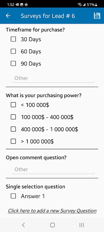 Includes advanced custom follow-up action lists to qualify prospects in seconds. Additional actions can be added on the fly, either from your Smartphone or from the web-portal.