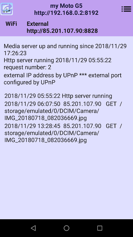 This application contains an UPnP and HTTP server, and an UPnP client. The server runs in the background as a long running service, and you can use another application simultaneously.