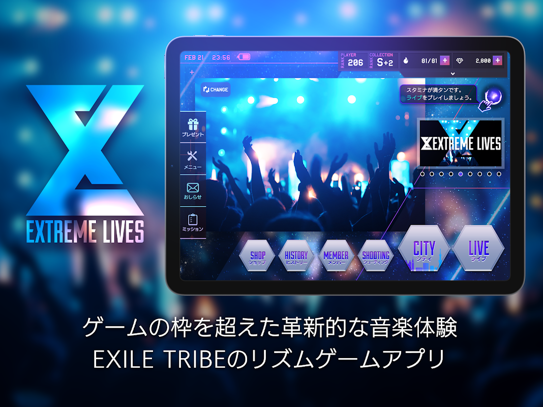 Six groups of EXILE and the third generation J SOUL BROTHERS, GENERATIONS, THE RAMPAGE, FANTASTICS, and BALLISTIK BOYZ, who inherit the soul, will gather and relive the LIVE images and famous performances played live for 20 years on their smartphones. It is a live music app that condenses the history of EXILE TRIBE!