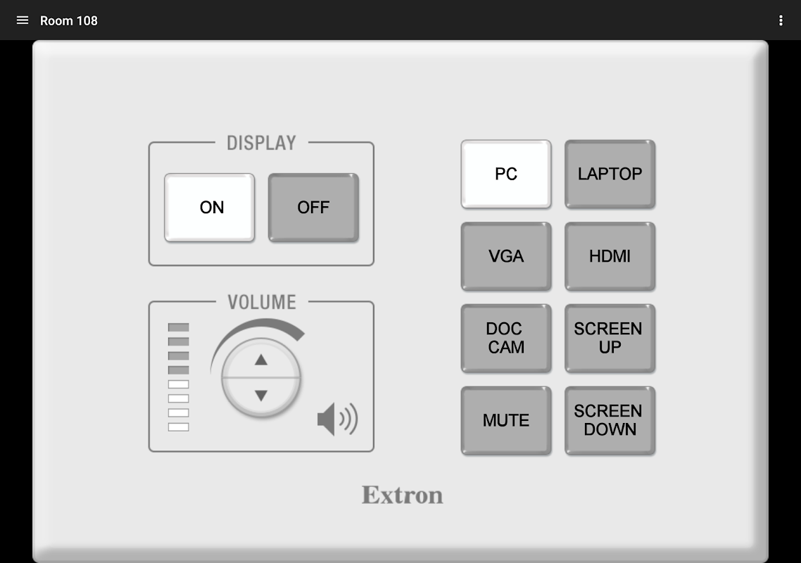 Extron Control for Android takes AV room control to a whole new level of convenience. This easy-to-use AV control system app gives users complete access to Extron control systems directly from your Android device. Simply tap the Extron Control icon and connect to your chosen room to experience seamless, highly-responsive control. Extron Control automatically loads the user interfaces present on many Extron control products without a lengthy setup and customization process. The familiar interfaces emulate the TouchLink® Pro touchpanel, eBUS® button panel, Network Button Panel, or MediaLink® Plus controller in the room, and all button presses are kept in sync between the app and the Extron control devices.
