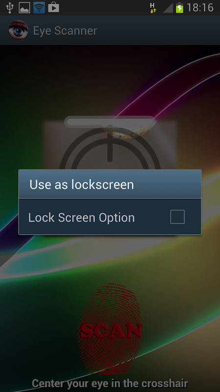 - This eye scanner can be used as a lock screen if you check the option "Use as lock screen".