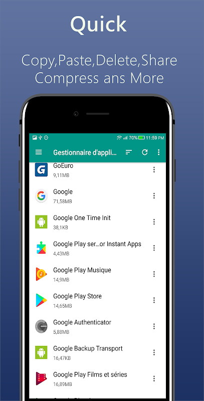 File manager with the help of your favorite pdf, mp3, image app can see your usual file.