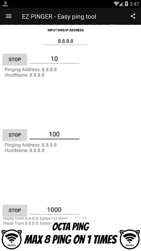 Ez Ping is network utility that give you choose 3 mode auto ping or developer or octa ping mode.