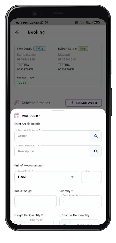 2. Load, Unload and various transit management features like OGPL, Local Transit, Door Delivery List.
