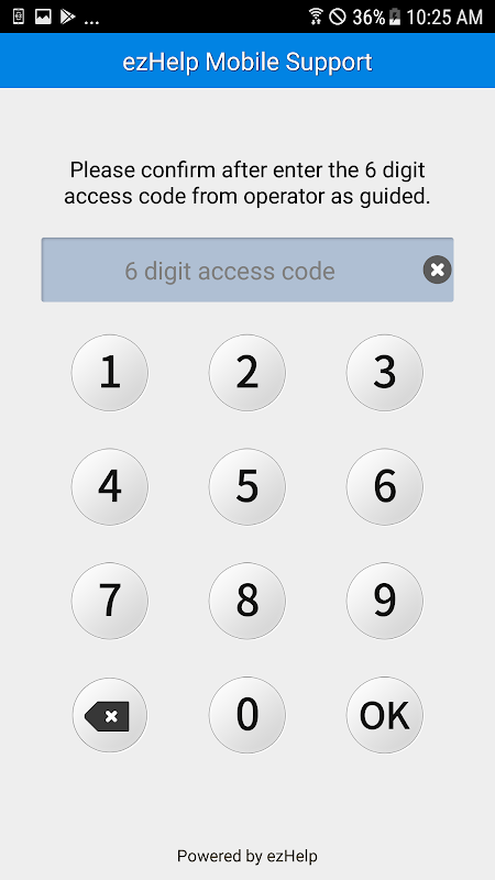 Step2. Enter the access code (6 digits) provided by the representative and touch the OK button.