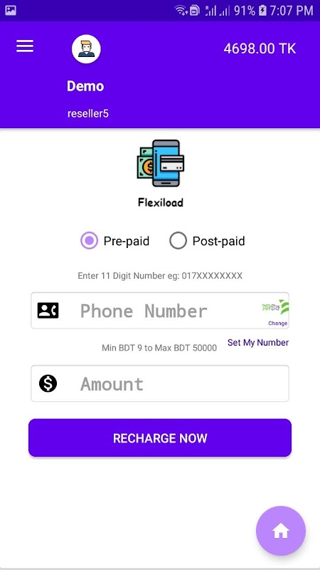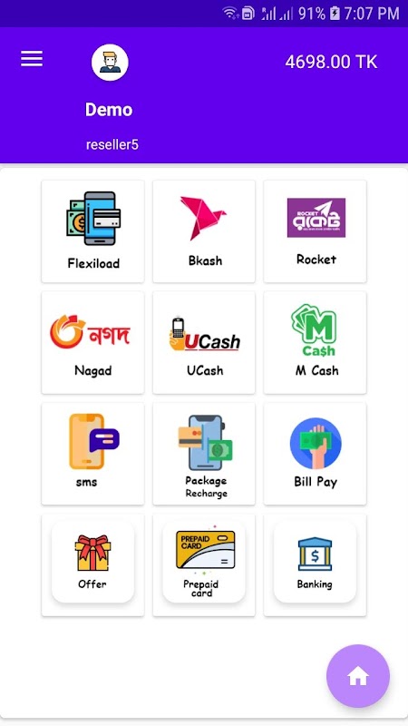 Online Automatic Flexiload Net Pack Minute Pack Bundle Pack Bkash Rocket Mcash Ucash SMS Billpay Bank Transation Application