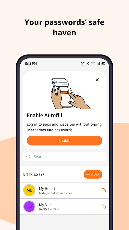 Secure password vault directly on your device. Get suggestions for strong passwords and avoid reusing the same password across different accounts, reducing the risk of security breaches, especially for sensitive accounts like bank accounts and personal emails.