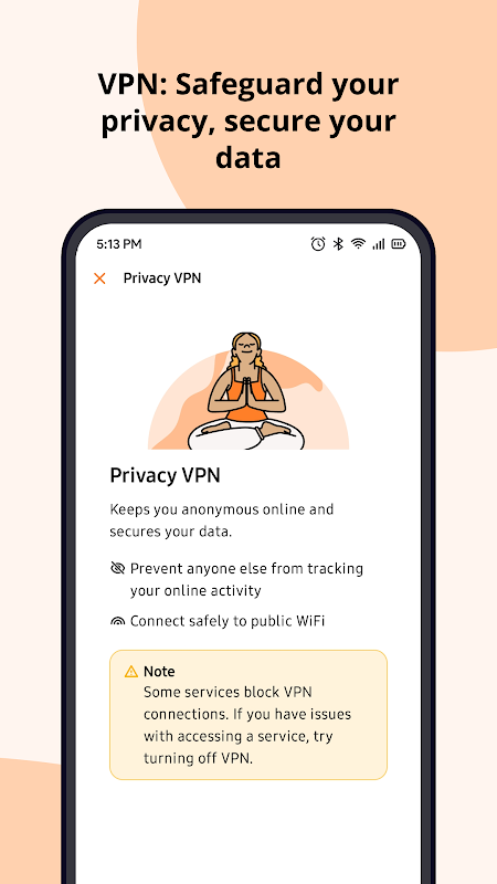 A virtual private network (VPN) protects your privacy and internet connection. Prevent tracking and receive alerts when accessing unsafe Wi-Fi, reducing the risk of personal data theft for malicious purposes.