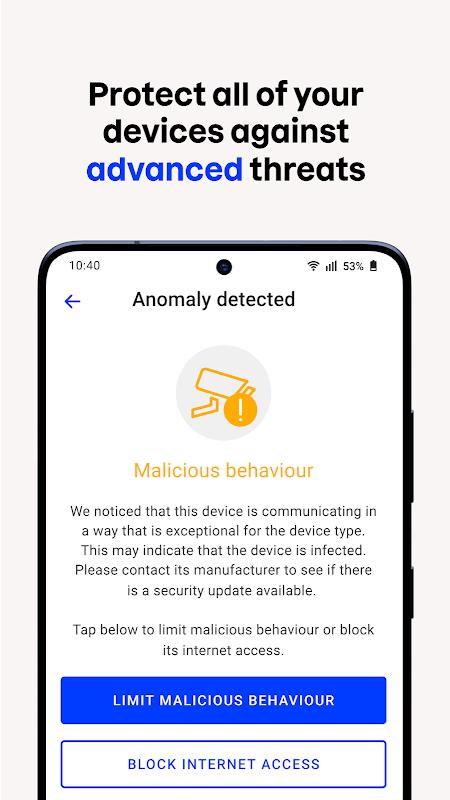 Protect your smart home devices against online threats and hacking. Receive notifications if devices start behaving oddly and block Internet access for those devices.