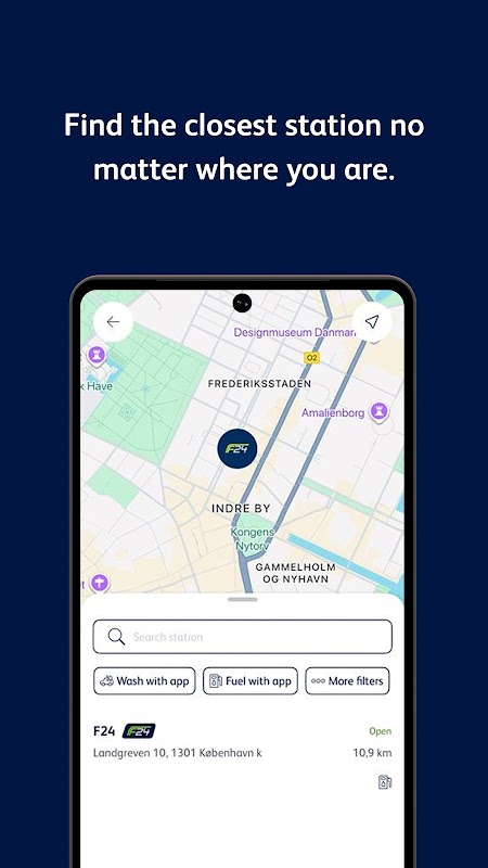 With the F24 app, we have made it easy and convenient for you to fuel and wash your car. Add your F24 card or Dankort, Visa or Mastercard, and you're ready to fuel or wash. We also store your receipts in the app.