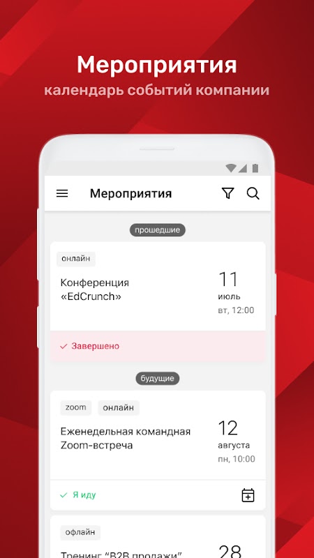 ⁃ تقویم رویدادهای شرکتی با امکان درخواست مشارکت
