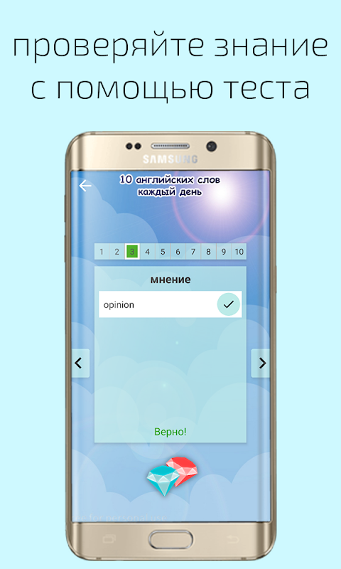 Хотите быстро пополнить свой запас английских слов и изучить английский язык не прилагая больших усилий? Приложение "10 английских слов каждый день" поможет вам в достижении этой цели! Изучайте по 10 слов каждый день, проверяйте их знание с помощью теста, а также, при желании, повторяйте все изученные слова.