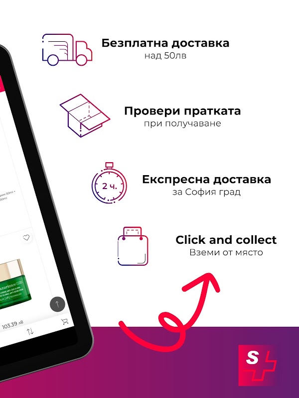 در اپلیکیشن موبایل ما، کاربران می توانند از شرایط ترجیحی ویژه، تنوع محصول، امکان تحویل سریع در مدت 2 ساعت برای شهر صوفیه، خدمات کلیک و جمع آوری راحت و نگرش حرفه ای استفاده کنند.