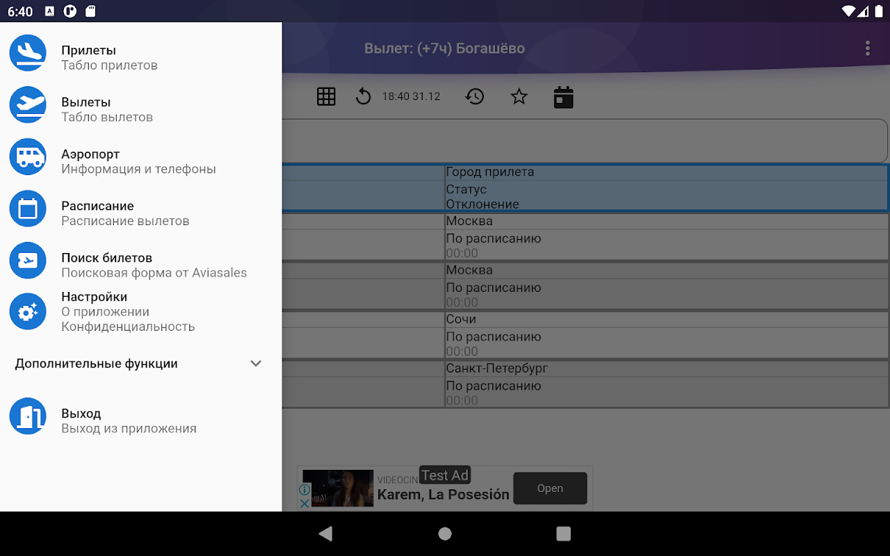 یک برنامه غیر رسمی با اطلاعاتی در مورد وضعیت خروج و ورود در فرودگاه بوگاشوو (تامسک). علاوه بر این، شامل برنامه پرواز و سایر اطلاعات مفید است.