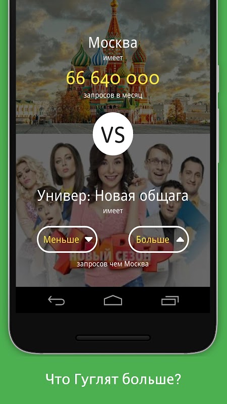 • برنامه‌نما Больше Меньше - Что популярнее عکس از صفحه