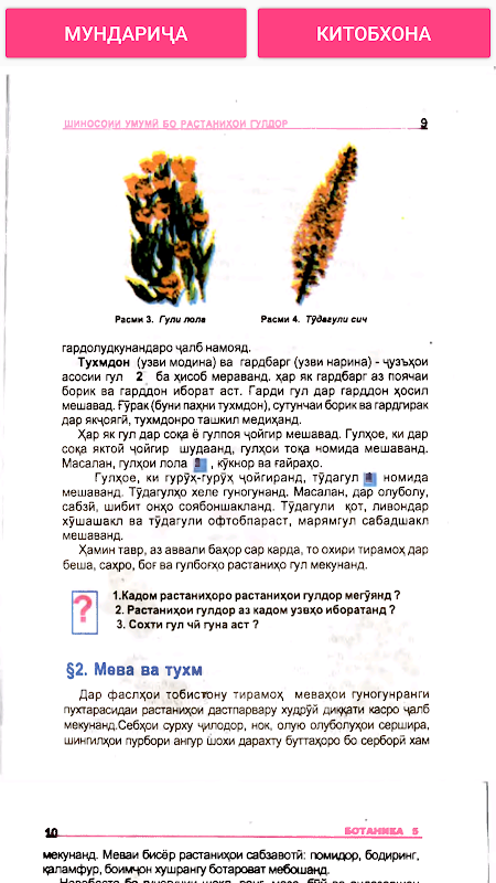 баъзе расмҳо ва маводҳо аз китоби дарсии "Биология: растанӣ,