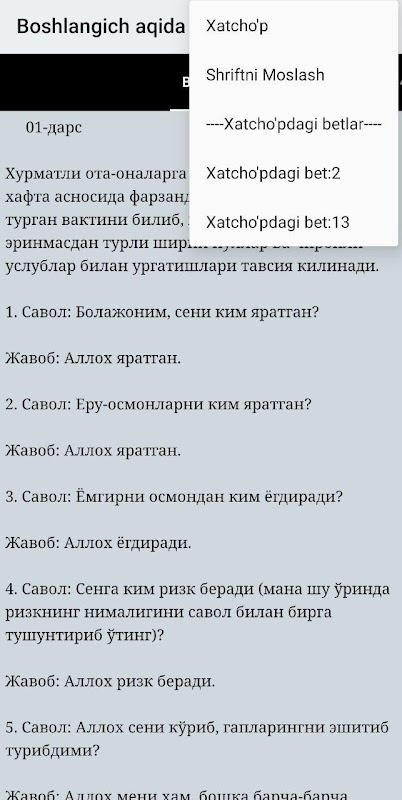 Muxtaram ота-оналар، фарзадларингизга бу дарсларни таълим беришингизда албатта бирзадларингизга кейинчалакдила. شونینگ uchun nasihat kilamizki, biros mashakkat sizlary farmzandning tarbiya ва таълимидан узиб кўймаси. Xamda san-manga солиб ота онага، آن اتاگا تاشلب кўйمانگیز. Farzandlarga tarbiya ва таълим بریب ularning dunёkarashini kengaytirish xар ота-онага вожибдир. Киёмат кунида ота xам, она xam خوارجندلارینینگ таълиму-тарбияси тўгрисида албатта сўралурлар.