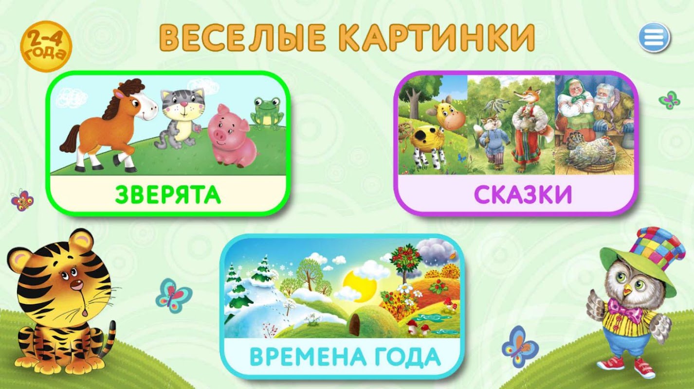 Приложение «Весёлые картинки» — весёлая и полезная образовательная игра, предназначенная для малышей двух-трёх лет. В процессе игры ребёнок научится собирать картинки из нескольких частей. Малыш сам сможет выбрать тему, на которую хочет собирать картинки. Таких тем представлено три — сказки, зверята и времена года. Также в игре предусмотрена возможность выбора уровня сложности.