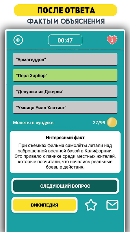 For each correct answer in the Brain Quiz, you will receive coins and an interesting fact after the answer. Use the coins earned in the quiz to use the hint.