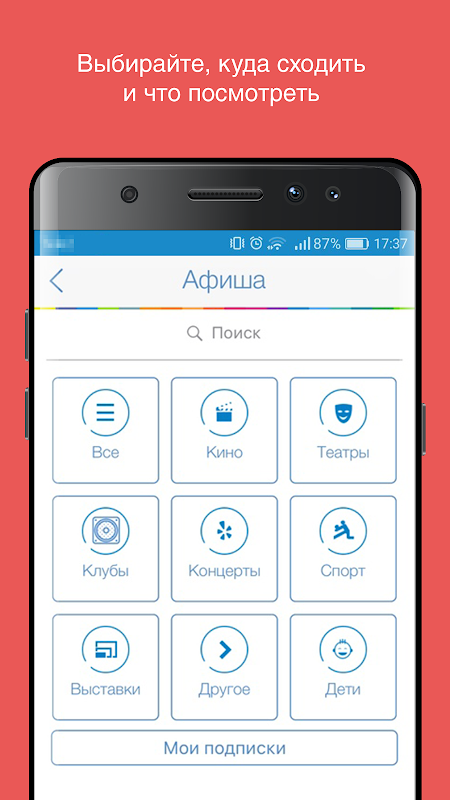 * Афиша — кинотеатры, театры, концерты и выставки, другие мероприятия.