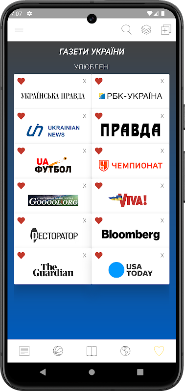 روزنامه ها برای ناوبری راحت تر گروه بندی می شوند. بنابراین، می توانید "پراودا" را بخوانید و سپس به روزنامه های دیگر هم رده مانند "UNIAN" یا "TSN" بروید. این به شما امکان می دهد تا در مورد رویدادهای جاری در اوکراین فکر کنید.