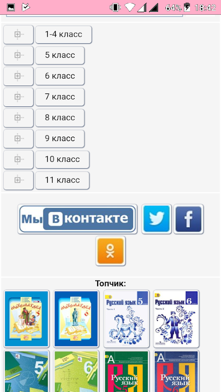 В школе - ГДЗ - над этим приложением работал один из самых крупных порталов для школьников с множеством решебников на любой вкус, и по любому предмету. Здесь вы сможете найти решебник для своей школьной программы при этом не прилагать особых усилий, или же не покупать настоящий решебник. Все что вам нужно это скачать данное приложение, выбрать свой класс и найти нужную вам книгу, а далее вы увидите решебник на все задания по предмету.