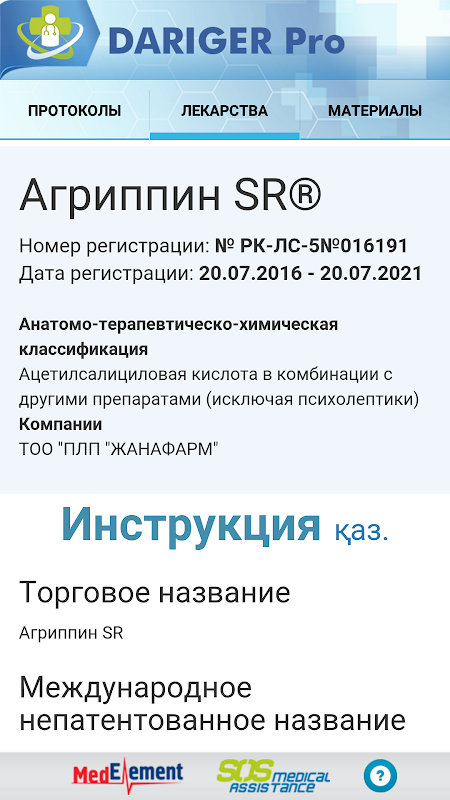 نرم افزار علاوه بر شامل یک بخش "داروها". این دستورالعمل ها را به مواد مخدر در دولت ثبت نام از مواد مخدر قزاقستان، قزاقستان و روسی ثبت نام (بخش در طول پر کردن) فراهم می کند.