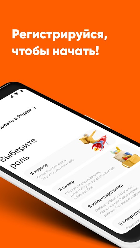در برنامه Darkstore، می توانید انتخاب کنید که می خواهید با چه کسی کار کنید: یک پیک، یک سفارش دهنده یا یک گیرنده موجودی. شما فقط باید هنگام ثبت نام آنچه را که بیشتر دوست دارید انتخاب کنید. اگر مطمئن نیستید، پس از اتمام دوره کارآموزی می توانید نقش را تغییر دهید یا رد کنید.