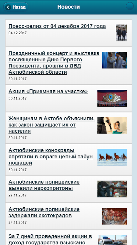 Мобильное приложение Департамента внутренних дел Актюбинской области Министерства внутренних дел Республики Казахстан,