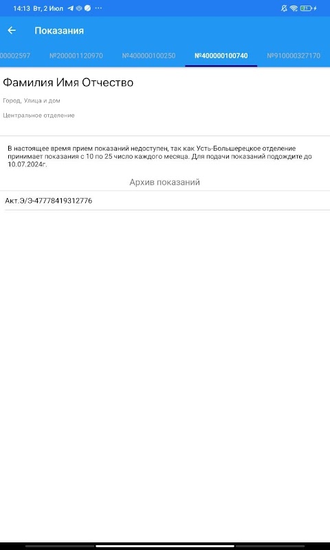 حساب شخصی مصرف کننده مسکن و خدمات عمومی PJSC "DEK"