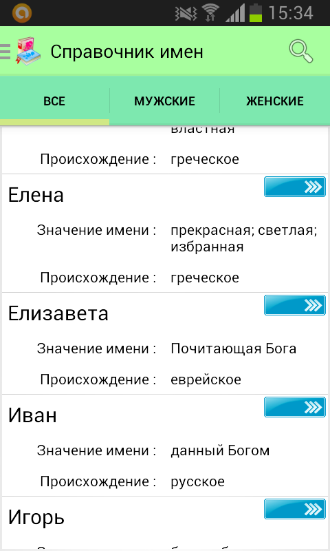 В этом справочнике имен представлены значение имени, происхождение а так же подробные описания большинства наиболее встречающихся в России имен.