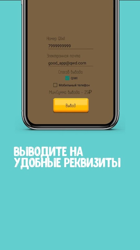 В приложении присутствует удобная система вывода, которая позволяет с лёгкостью выводить заработанные Вами деньги!