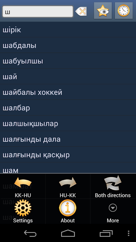 This is Kazakh Hungarian Dictionary - Kazah-Magyar és Magyar-Kazah Szótár Венгерско-Казахский и Казахско-Венгерский Словарь). The Application is OFFLINE and does not need the internet connection.