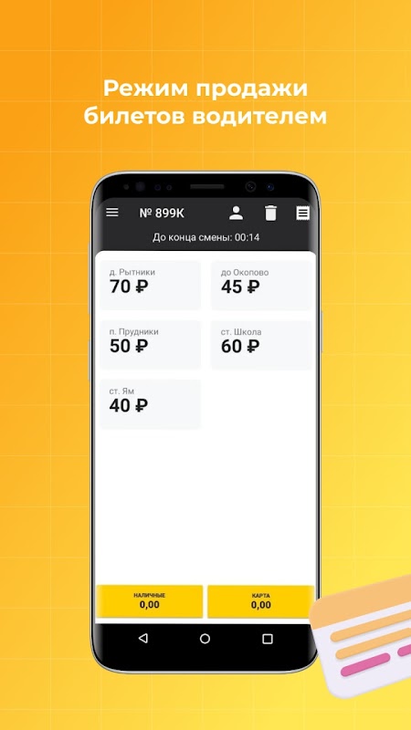 برنامه Kassa Transport را روی تلفن های هوشمند ، تبلت ها یا میزهای نقدی رانندگان نصب کنید تا پرداخت ها را بپذیرد ، چک تولید کند و مطابق با 54-FZ باشد.