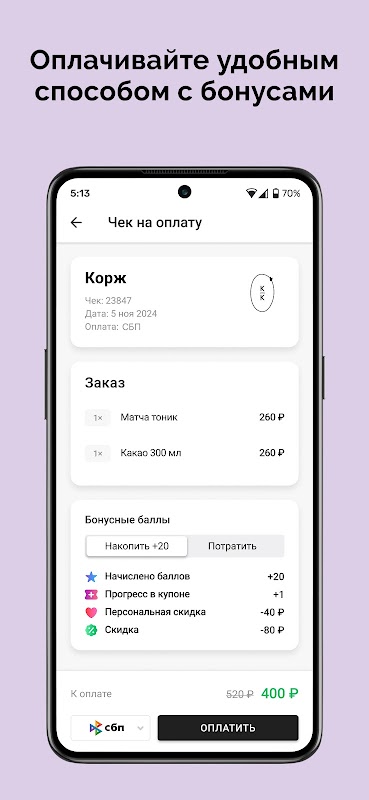 برنامه تلفن همراه Korzh Coffee - قهوه از بو داده های محلی، صبحانه های سریع و کروسان های امضا.