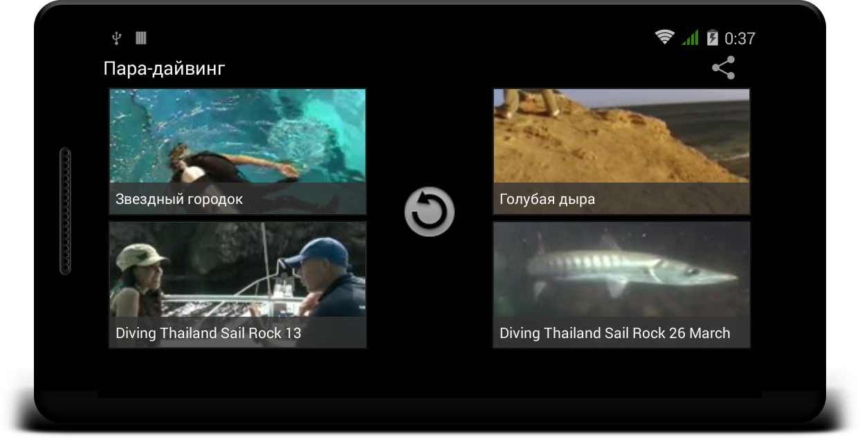Предоставлена возможность просмотра программы передач, а также просмотра роликов телеканала, не дожидаясь, пока они появятся в эфире. Ролики организованы по рубрикам, и вы можете легко найти и выбрать интересующий вас контент, сразу же приступив к просмотру.