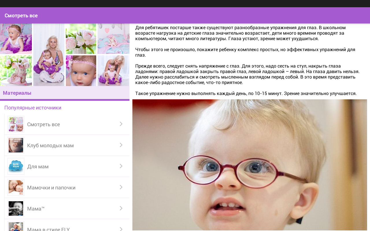 این برنامه به طور خاص برای والدین مدرن جوان طراحی شده است. در اینجا شما راهنمایی در مورد توسعه و تربیت کودکان، مقالات در مورد بهداشت، تغذیه، توصیه های برای مراقبت از کودکان، ایده های در مورد سازماندهی سرگرمی برای کودکان پیدا خواهید کرد - بازی های آموزشی، قافیه ها، صنایع دستی، کارتون و خیلی چیزهای دیگر.