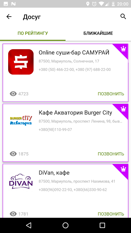 * ищите любые организации в справочнике предприятий, их контакты и расположение на карте. Приложение может определять ваше местоположение с помощью GPS, Wi-Fi или сотовых сетей и находить ближайшие к вам места