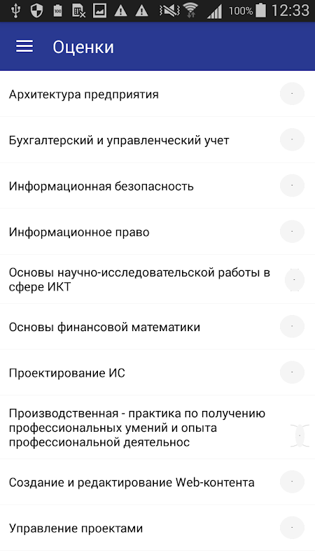 4. Просмотр зачетной книжки, информации о задолженностях и текущей успеваемости