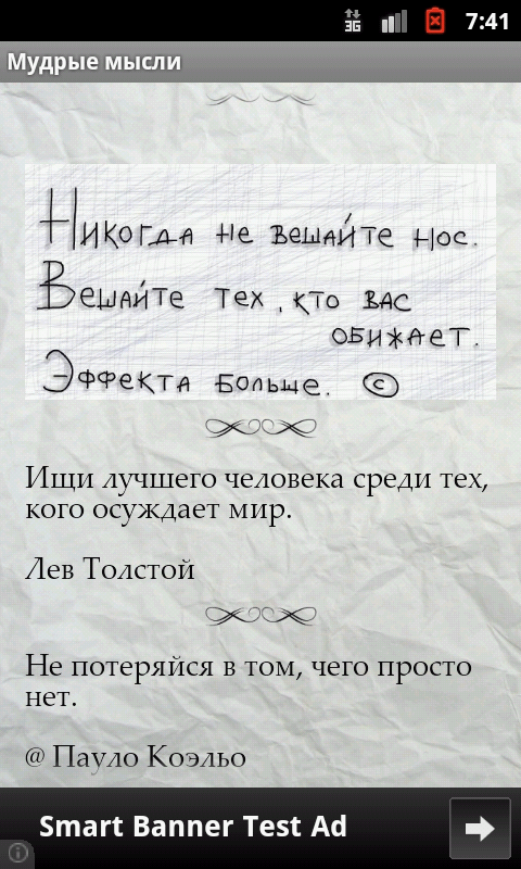 Мудрые слова знаменитых людей и философов и всё в одном приложении. Хотите познать смысл жизни или пополнить свою библиотеку хорошими фразами? Тогда наше приложения для Вас!