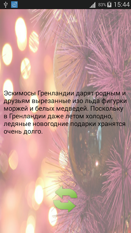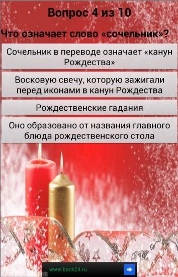 С помощью этого приложения вы весело и интересно узнаете много нового о Новом годе и Рождестве. Новогодние игры - отличное занятие для долгих зимних вечеров в преддверии праздников. Игра оформлена в виде викторины. А если вам удастся допустить менее 4-х ошибок, то призом будет возможность загадать желание и узнать, сбудется ли оно. Также есть возможность просто полистать и почитать интересные факты о Новом годе и Рождестве.