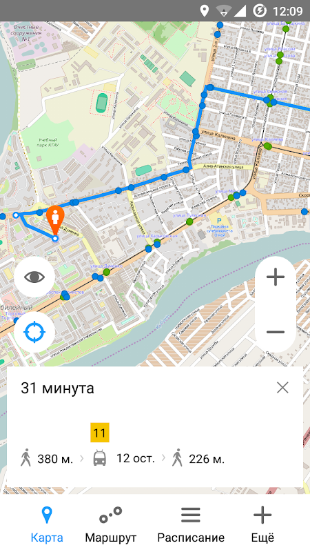 Также приложение позволяет найти наиболее оптимальный маршрут, по которому можно добраться из любой точки города до пункта назначения, рассчитать время в пути и количество остановок и пересадок, узнать тарифы на проезд в том или ином виде транспорта.