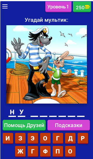 Вам предстоит угадывать названия популярных мультфильмов по изображению. Зарабатывай монеты и трать их для приодоления новых уровней в игре.