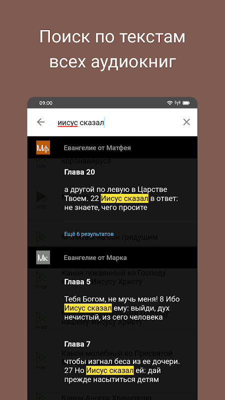 مانند سایر مجموعه های مجموعه کتاب صوتی دعا، کلمات گفته شده در مناجات ها برجسته شده است که به شما امکان می دهد متن را دنبال کنید، به درک بهتر و حفظ نماز کمک می کند.