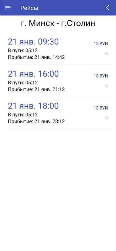 برنامه رزرو بلیط برای حمل و نقل مسافر در مسیرها: Molodechno - Minsk