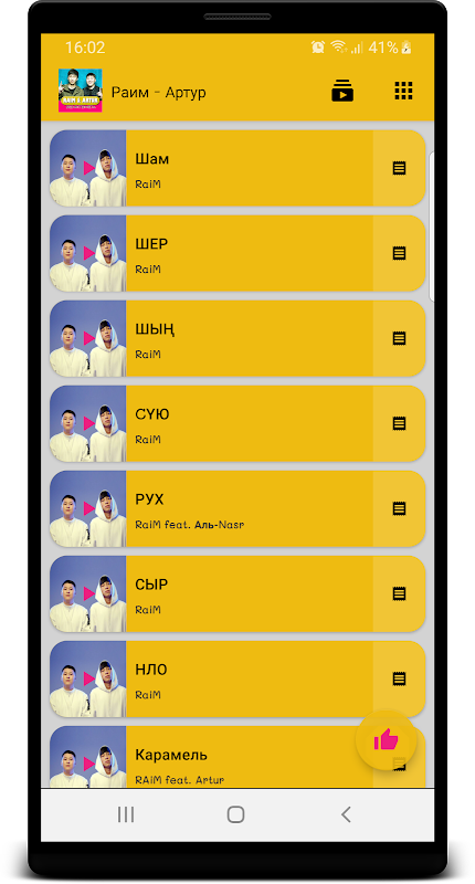 Өзіңіздің сүйікті әндеріңізді барлық жерде тыңдау үшін, «Раим & Артур әндер мен сөздері Интернетсіз» қосымшасында Интернетке қосылусыз және жоғары сапалы дыбыспен «Raim & Artur» ең жақсы әндері бар.