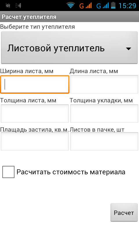 هنگامی که ارزش یک بسته عایق ناشناخته، شما می توانید مقدار متر مکعب وارد کنید عایق و برنامه هزینه یک بسته را محاسبه کند.