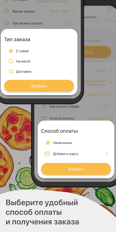 نحوه ثبت سفارش در برنامه "پیتزا گرد": مواردی را که دوست دارید از منو انتخاب کنید، آنها را به سبد اضافه کنید و به صفحه پرداخت بروید (با کلیک بر روی نماد سبد).
